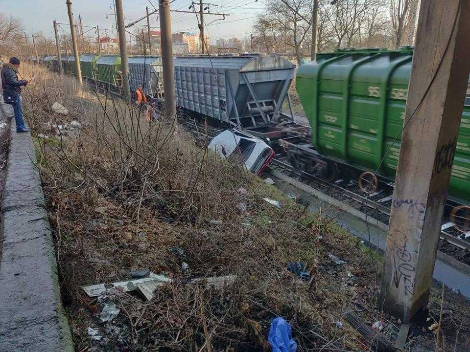 В Одессе пьяный водитель вылетел на железнодорожные рельсы. Фото