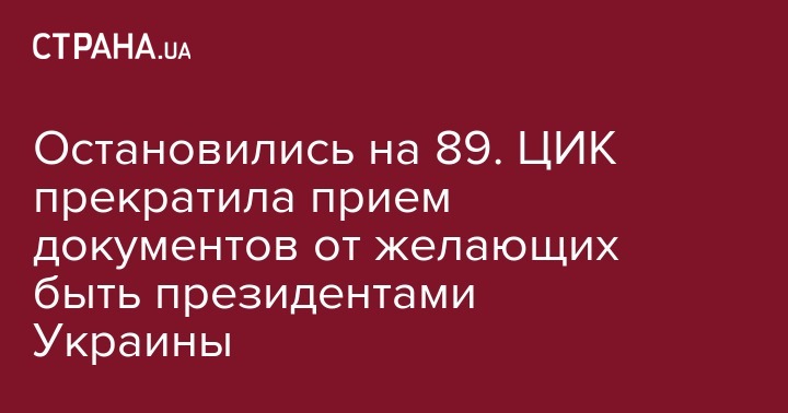 Остановились на 89. ЦИК прекратила прием документов от желающих быть президентами Украины