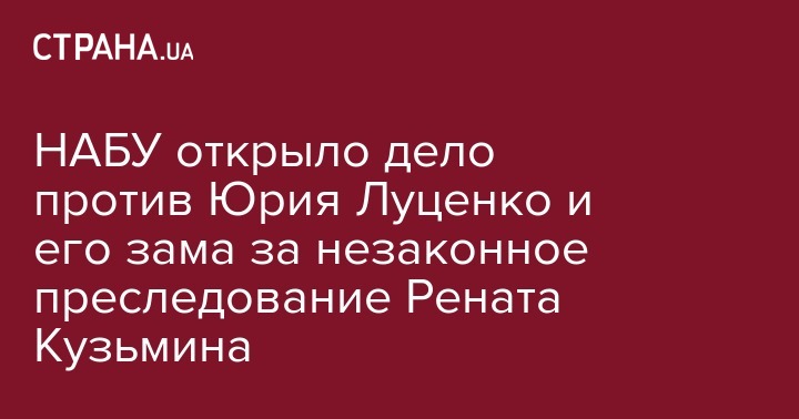 Национальное антикоррупцинное бюро (НАБУ) открыло уголовное дело против генпрокурора Юрия Луценко и его зама Юрия Столярчука по факту возможной организации незаконного уголовного преследования экс-заместителя главы прокуратуры Рената Кузьмина. Об этом со ссылкой на источник в правоохранительных органах пишут "Украинские новости"