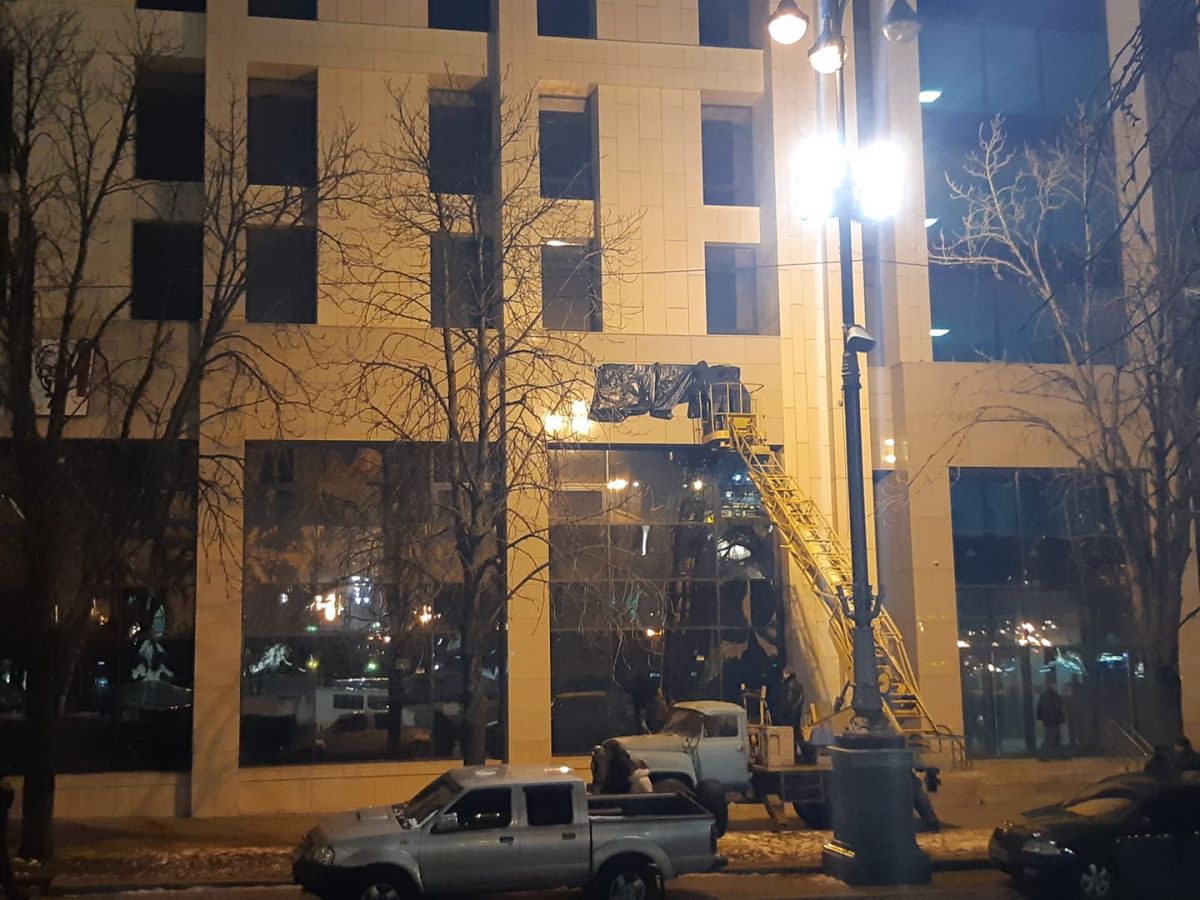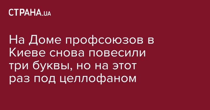 На Доме профсоюзов в Киеве снова повесили три буквы, но на этот раз под целлофаном