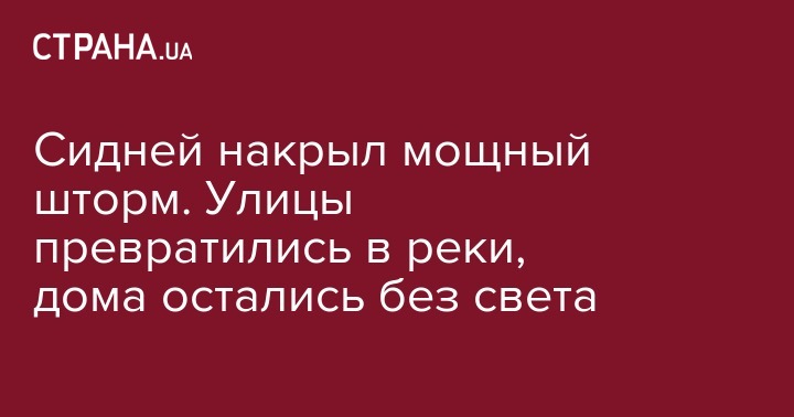 Мощный шторм накрыл улицы австралийского Сиднея, они теперь превратились в реки. В них тонут автомобили и общественный транспорт, десятки тысяч домов остались без света. Об этом сообщает Telegram-канал Life shot.