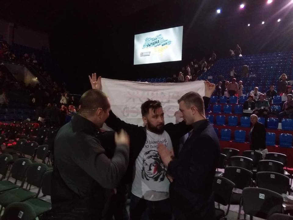 Охрана Порошенко забрала у активиста мобилку и порвала плакат о Кате Гандзюк. Фото