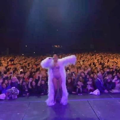 Похоже, Каролине нравится быть каждый день разной. То она отдыхает в тесном топе с полотенцем на голове, то скачет на сцене в телесном боди в белой шубе в пол, которую в сети уже окрестили "костюмом Чубаки".