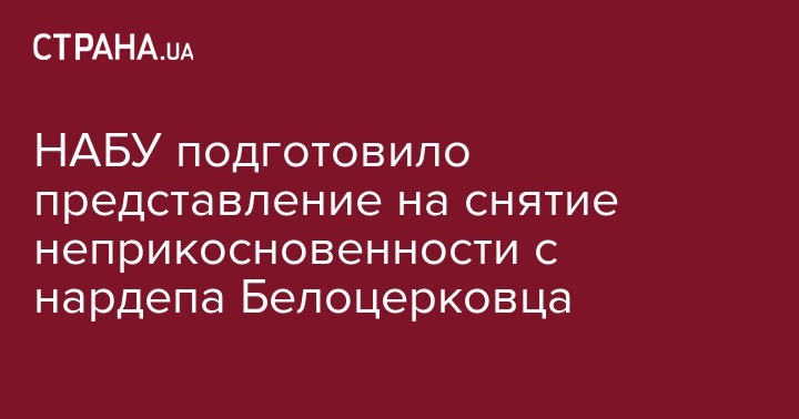 Национальное антикоррупционное бюро Украины (НАБУ) подготовило материалы для снятия неприкосновенности и привлечения к уголовной ответственности народного депутата Верховной Рады Дмитрия Белоцерковца (фракция "Блок Петра Порошенко" - Прим.Ред.).