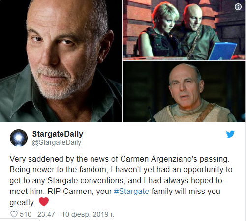 Актер скончался еще 10 февраля, однако в СМИ информация появилась лишь сейчас. Причины смерти пока остаются неизвестными. За свою продолжительную карьеру актер успел сняться в более чем 200 фильмах. Среди наиболее известных работ Аргензиано - роли в сериале "Доктор Хаус", фильмах "Бионическая женщина", "Вавилон 5", "Когда звонит незнакомец", "Обмани меня и Угнать за 60 секунд".