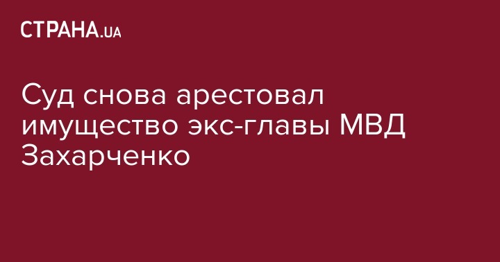 Печерский районный суд Киева повторно наложил арест на имущество компании Stichting Administratiekantoor LVV, которую следствие связывает с экс-министром внутренних дел Украины Виталием Захарченко. Об этом сообщает "Радио Свобода" со ссылкой на Генеральную прокуратуру.