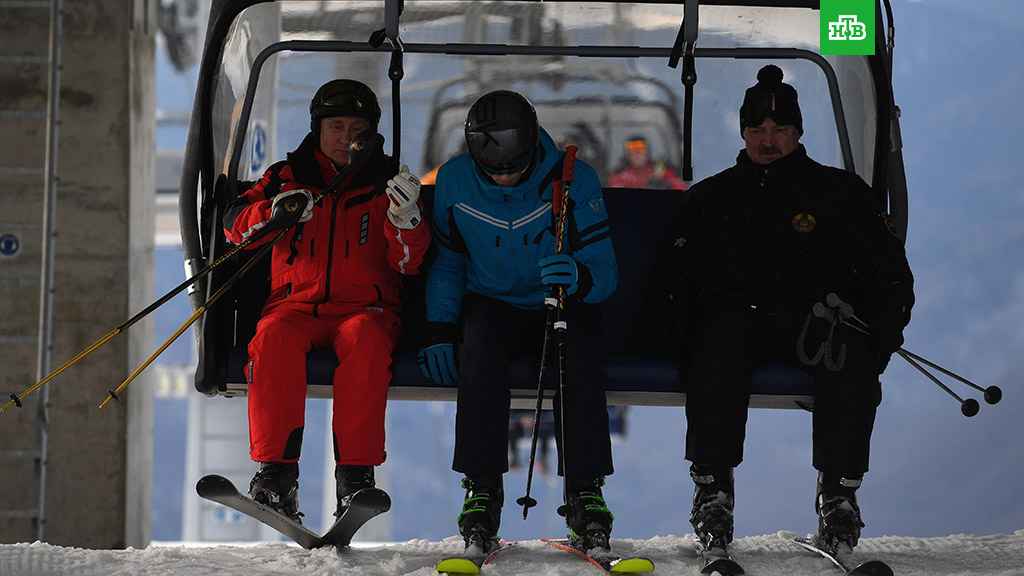 В первый день переговоров в Сочи президенты России и Беларуси Владимир Путин и Александр Лукашенко вместе покатались на лыжах, сообщает РИА "Новости".