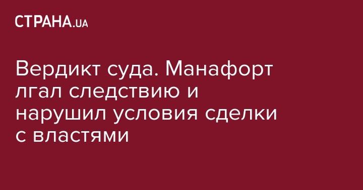 Вердикт суда. Манафорт лгал следствию и нарушил условия сделки с властями