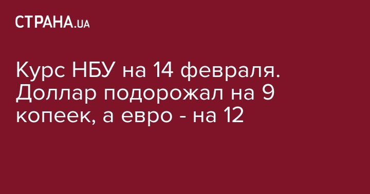 Курс НБУ на 14 февраля. Доллар подорожал на 9 копеек, а евро - на 12