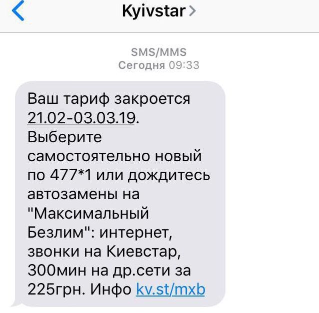 Старые дешевые тарифы закрываются, а пользователям предлагают выбрать себе другой пакет, или они будут автоматически переведены на новый, более дорогой тариф. В частности, на тариф стоимостью 225 гривен, если они не выберут другой. Изменения начнутся 21 февраля и закончатся 15 апреля.
