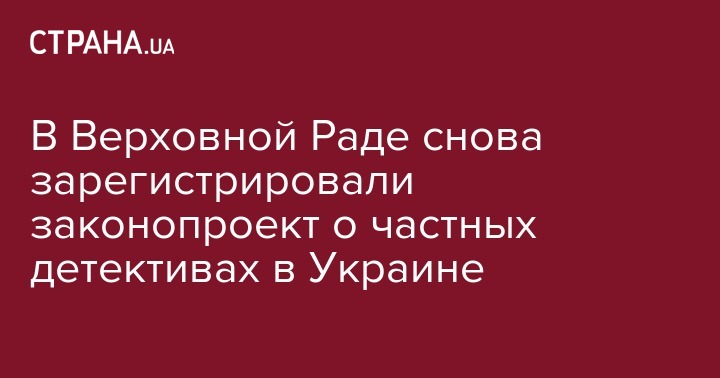 Как сообщала "Страна", ранее в Верховной Раде планировали рассмотреть законопроект о частной детективной деятельности 19-22 июня.