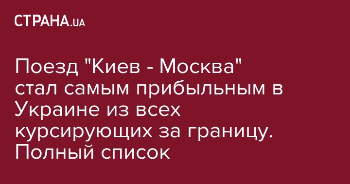 Поезд "Киев - Москва" стал самым прибыльным в Украине из всех курсирующих за границу. Полный список
