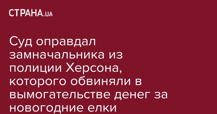 Суд оправдал замначальника Управления защиты экономики Нацполиции в Херсонской области Юрия Бурого, которого обвиняли в мошенничестве и вымогательстве взяток у предпринимателей, которые занимались вырубкой елок. Об этом со ссылкой на приговор пишут "Украинские Новости"