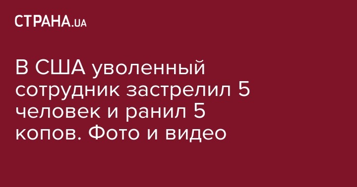 В США мужчина после сообщения об его увольнении застрелил пятерых сотрудников своей компании. Об этом передает агентство Reuters.