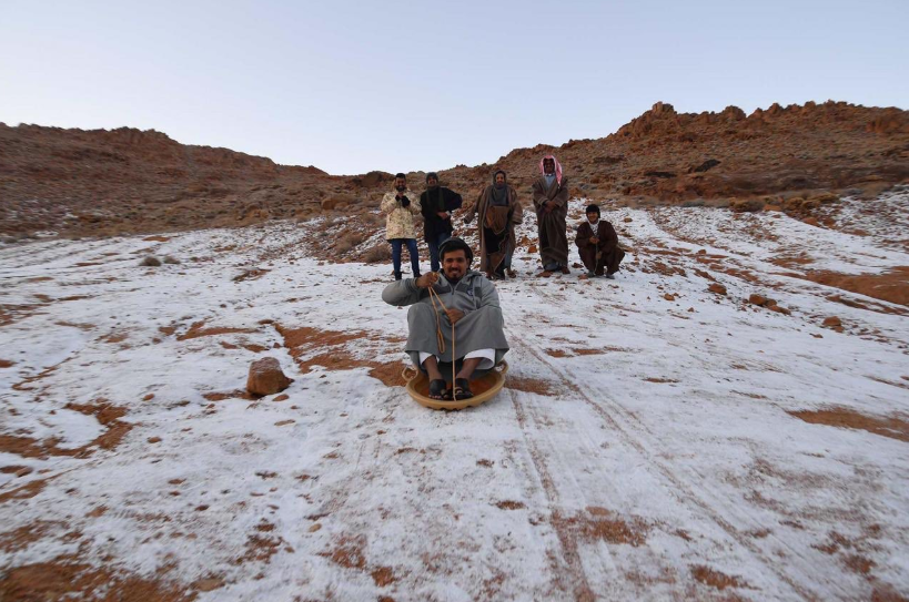В Саудовской Аравии, районе Джебель-эль-Лауза выпал мокрый снег. Местные жители уже оборудовали пункты для сдачи санок и самодельных лыж в аренду. Об этом сообщает ТАСС.