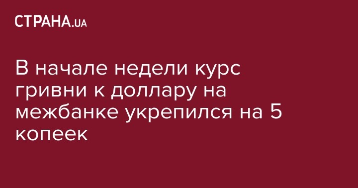 В начале недели курс гривни к доллару на межбанке укрепился на 5 копеек