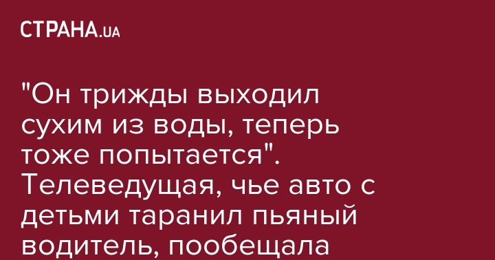 "Он трижды выходил сухим из воды, теперь тоже попытается". Телеведущая, чье авто с детьми таранил пьяный водитель, пообещала наказать обидчика