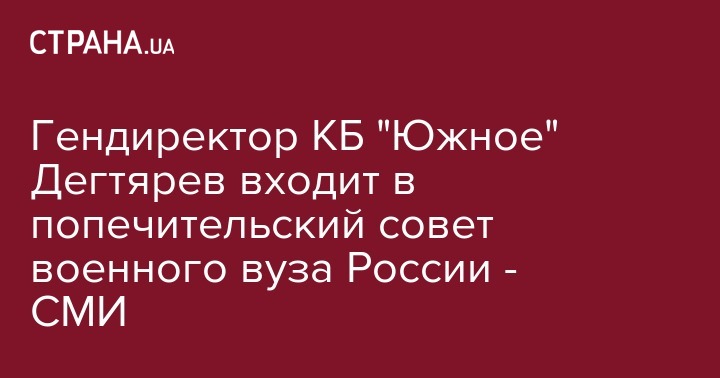 Гендиректор КБ "Южное" Александр Дегтярев является действующим членом Попечительского совета российского Балтийского государственного технического университета "Военмех" им. В.Ф.Устинова. Об этом сообщает 24tv.ua.
