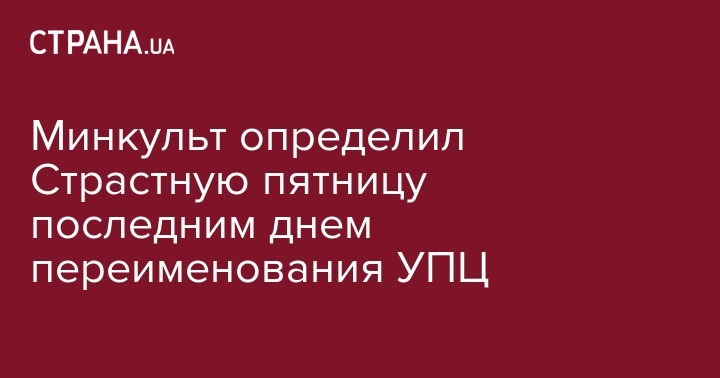 26 апреля истекает срок, отведенный Минкультом на переименование Украинской православной церкви. Это будет один из последних дней Великого поста - Страстная пятница.