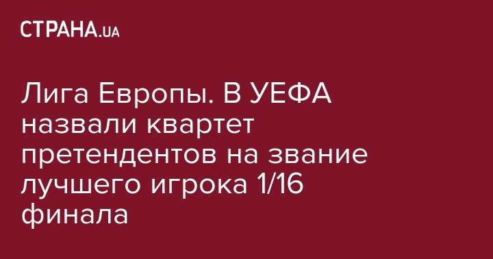 Лига Европы. В УЕФА назвали квартет претендентов на звание лучшего игрока 1/16 финала