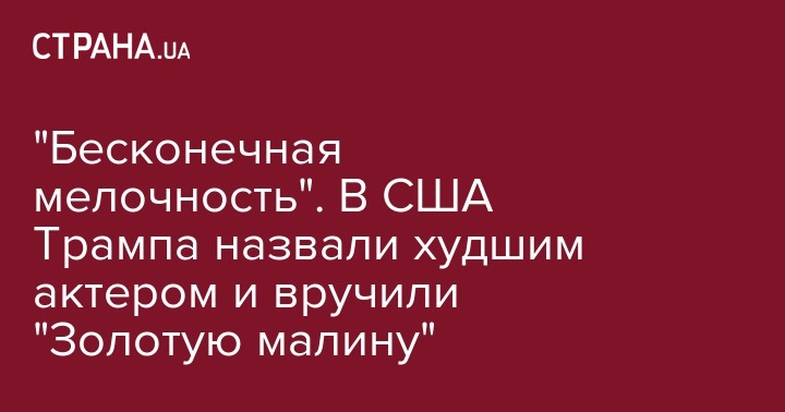 Худшим актером назвали президента США Дональда Трампа за роль самого себя в документальных лентах "Смерть нации" и "Фаренгейт 11/9". Главе Белого дома также присудили награду за "Худший актерский дуэт" - жюри отметило в этой категории Трампа и его "бесконечную мелочность".