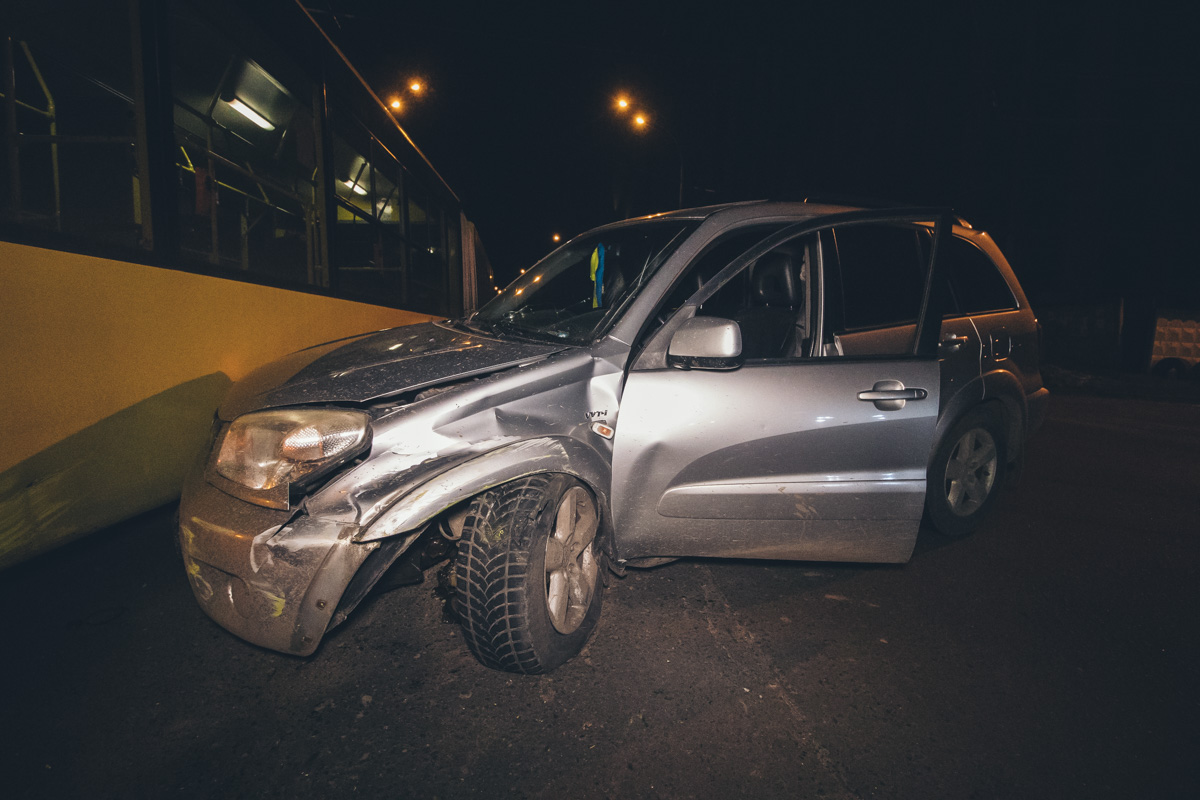 На улице Максимовича столкнулись троллейбус №50 и паркетник Toyota RAV4. Установлено, что "японец" двигался в сторону улицы Вильямса. По встречной полосе ехал троллейбус, без пассажиров, который направлялся в депо. Во время движения, мужчине за рулем Toyota стало плохо, он потерял управление и врезался в троллейбус.
