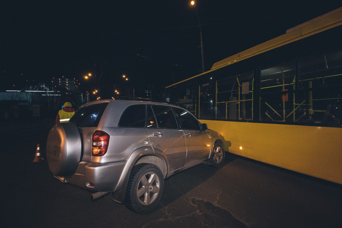 Прибывшие на место происшествия медики госпитализировали водителя внедорожника. По предварительным данным у него случился повторный инсульт. В результате аварии автомобиль Toyota получил серьезные повреждения. У внедорожника разбит правый бок. Троллейбус получил повреждения передней части.