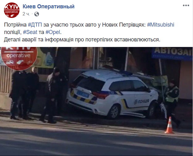В понедельник, 25 февраля, в селе Новые Петровцы Киевской области полицейские на дежурном автомобиле влетели в магазин с автозапчастями, устроив тройное ДТП. В результате происшествия пострадали несколько человек. Об этом сообщает "Киев Оперативный" на странице в Facebook.