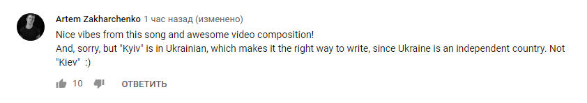 Клип Kiev был опубликован на канале Ванессы Паради в среду, 27 февраля. Не обошлось и без скандала: в целом все ролик хвалят, но около трети комментариев под ним звучат: "Kyiv not Kiev". Некоторых украинцев возмущает, что певица использует, по их мнению, неправильную транслитерацию.