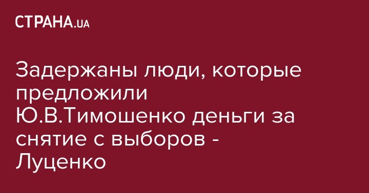 Сотрудники Генеральной прокуратуры Украины вместе с оперативниками СБУ только что задержали двух лиц, которые пытались вручить взятку в 5 миллионов гривен кандидату в президенты Юрию Тимошенко за то, чтобы он отказался баллотироваться. Об этом сообщил на своей странице в Facebook глава Генпрокуратуры Юрий Луценко.