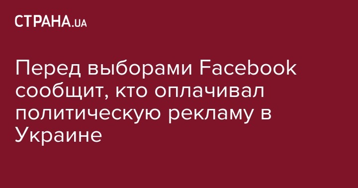 Накануне президентских выборов, которые состоятся 31 марта 2019 года, компания Facebook раскроет информацию о заказчиках политической рекламы в Украине. Об этом со ссылкой на руководителя корпоративных коммуникаций Facebook в Центральной и Восточной Европе Яна Щегенны пишет общественное движение ЧЕСНО.