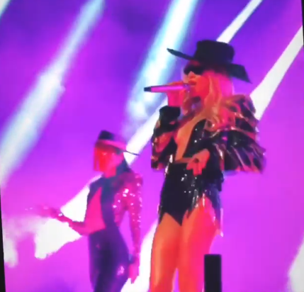 Светлана Лобода выходила на сцену в очень откровенных нарядах, обнажающих ее грудь и ноги. Один из ее нарядов представлял собой блестящий боди с глубоким декольте - до самого пояса. Также звезда выходила на сцену в обтягивающем комбинезоне, верх которого едва удерживал бюст.