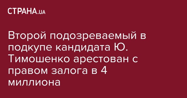 Второй подозреваемый в подкупе кандидата Ю. Тимошенко арестован с правом залога в 4 миллиона