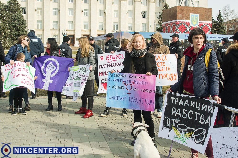Также Марш за права женщин 8 марта прошел и в Херсоне. Как передает издание Nikcenter, в акции участвовали около двадцати человек – представители феминистских и правозащитных организаций, активисты и пришедшие поддержать их херсонцы.