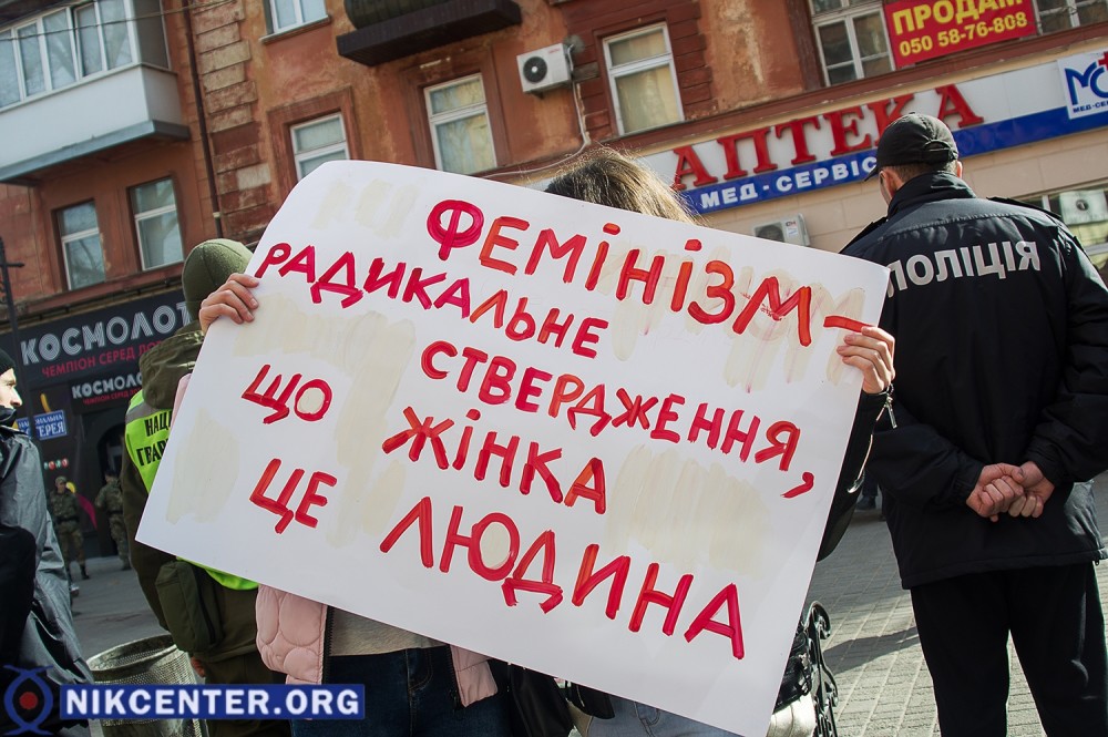 По данным UA: Харків, женщины прошли по центру города с лозунгами "Место женщины везде", "Бунтуй, кохай, права не віддавай", "Не продавайся за цветы - завтра станешь у плиты".