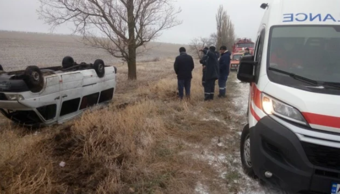 Под Запорожьем микроавтобус Renault слетел с трассы в кювет и перевернулся, погибли три человека. Фото