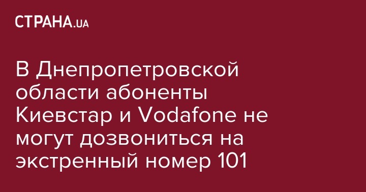 Сегодня утром, 10 марта, в Днепропетровской области возникли проблемы со связью операторов "Киевстар" и "Vodafone". Жители не могут дозвониться на горячую линию "101". Об этом сообщает пресс-служба ГосЧС области в Facebook.