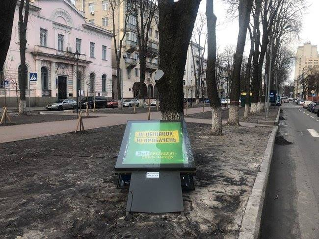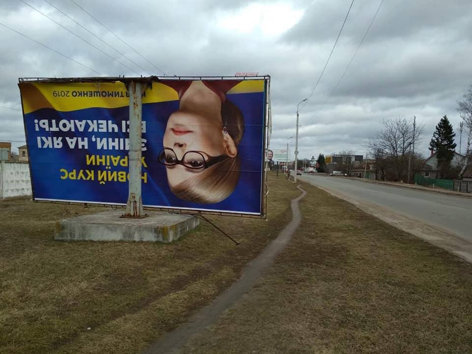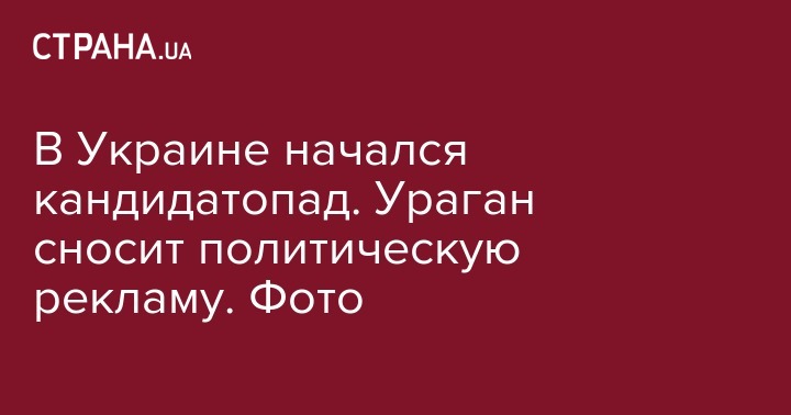 Так, пользователи Facebook делятся фото рухнувших баннеров выдвиженца от "Батькивщины" Юлии Тимошенко, выдвиженца от "Свободы" Руслана Кошулинского, выдвиженца от партии "Слуга народа" Владимира Зеленского и самовыдвиженца Петра Порошенко.
