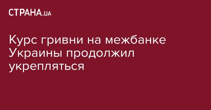 В понедельник, 11 марта курс гривни на межбанковском валютном рынке Украины укрепился до 26,35 грн/$1 с 26,3725 грн/$1 в пятницу, 8 марта.