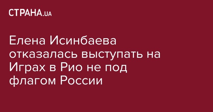 Двукратная олимпийская чемпионка Елена Исинбаева не поедет на Олимпиаду в Рио-де-Жанейро, поскольку намерена выступать только под флагом Российской федерации. Предлождение выступить под флагом олимпийского движения она отвергла, сообщил президент Всероссийской федерации лёгкой атлетики Дмитрий Шляхтин, передает BBC.