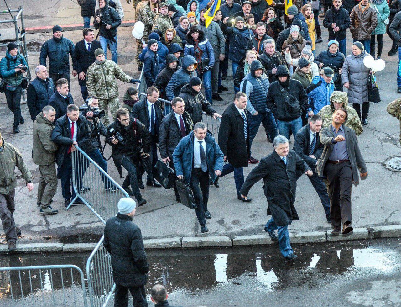 В сети делают фотожабы из фото Порошенко, убегающего с собственного митинга в Житомире