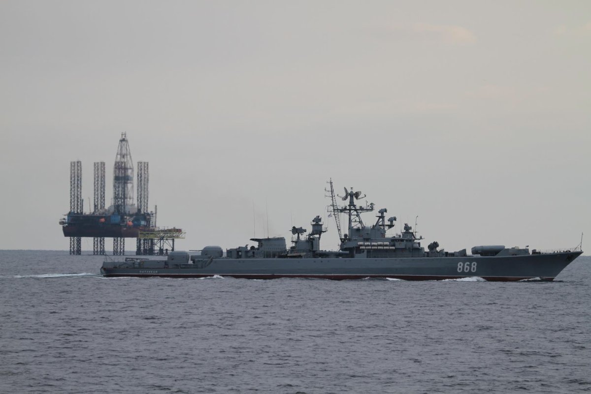 НАК "Нафтогаз Украины" опубликовал в своем Twitter снимки, на которых запечатлено, как российские военные корабли охраняют захваченные объекты компании.