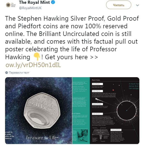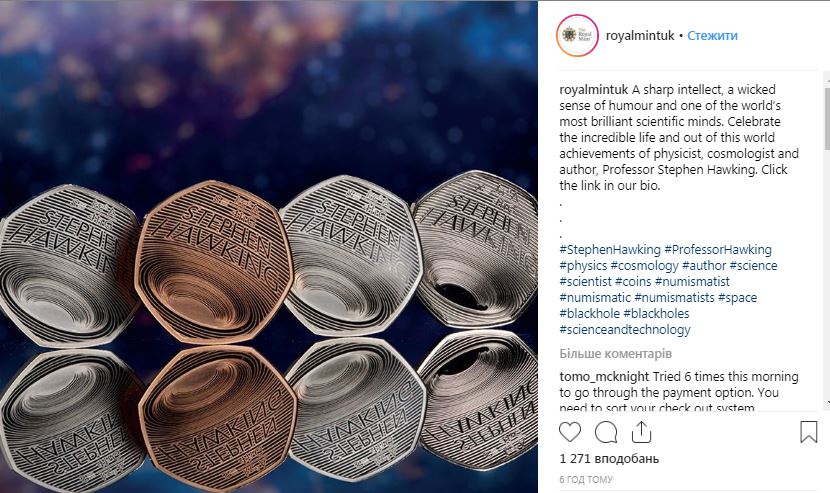 Монета номиналом 50 пенсов в честь Стивена Хокинга. Фото: instagram.com