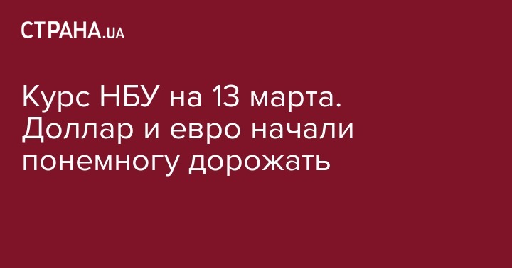 В среду, 13 марта, Национальный банк Украины (НБУ) установил официальный курс основных валют по отношению к гривне. По сравнению с предыдущим банковским днем доллар подорожал на 4 копейки. Об этом свидетельствуют данные, размещенные на сайте регулятора