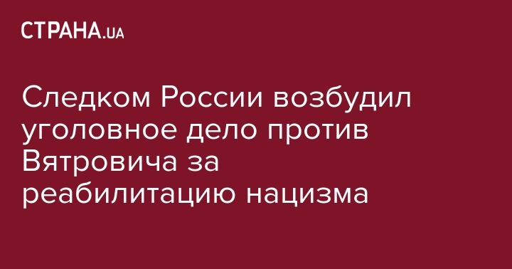 Уголовное дело по факту реабилитации нацизма возбуждено Следственным комитетом России  против главы Украинского института национальной памяти (УИНП) Владимира Вятровича.