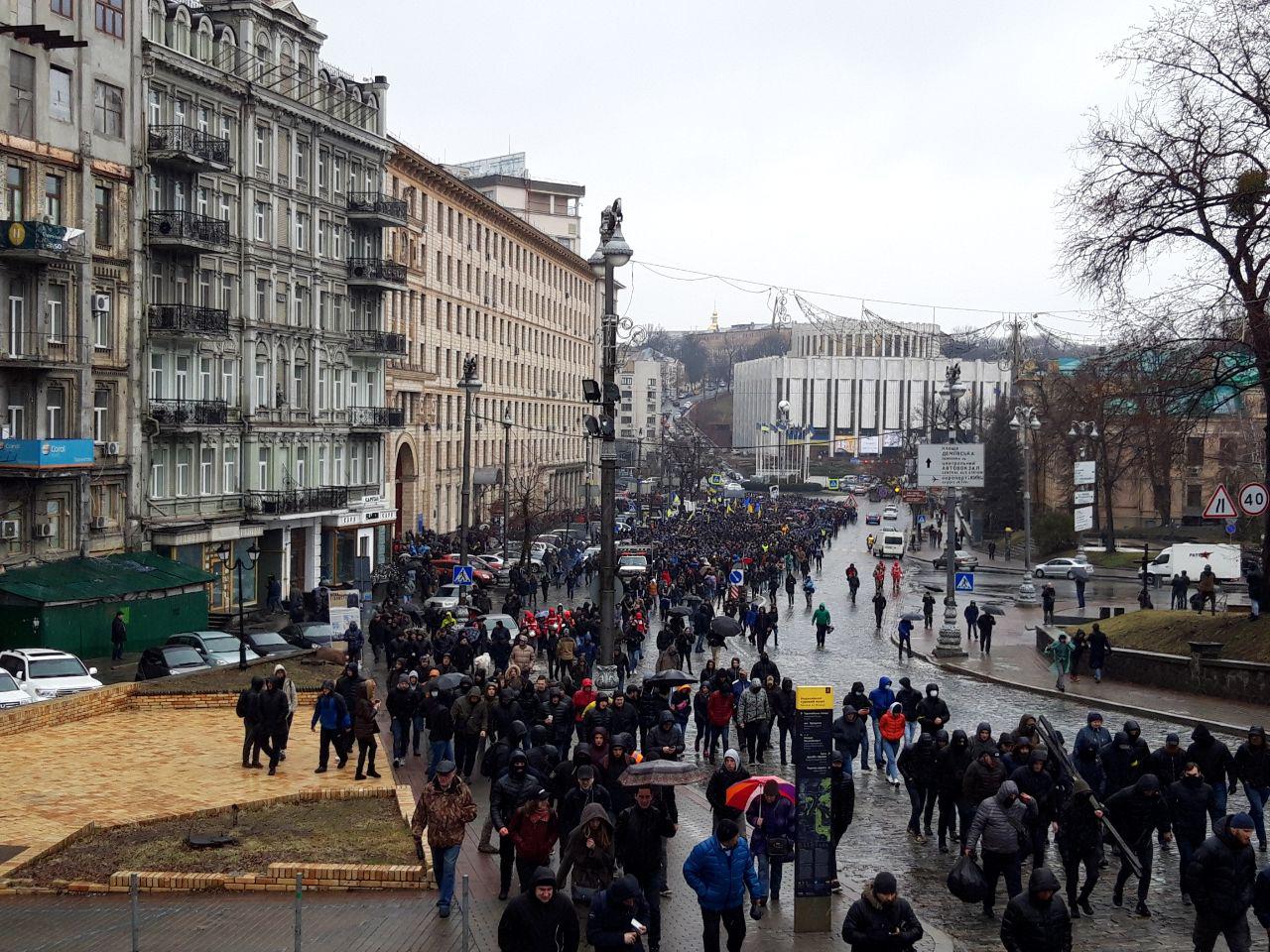 После мероприятия на Майдане участники протеста по Крещатику и мимо перекрестка Институтской и Шелковичной отправились к зданию Администрации Президента, где на тот момент уже дежурило большое количество полиции. Подходы к АП были заблокированы.