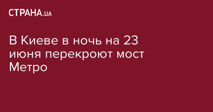 В Киеве в ночь на 23 июня перекроют мост Метро