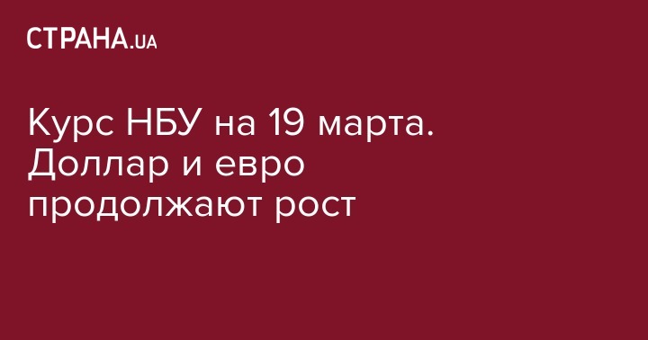 Национальный банк Украины (НБУ) установил на вторник, 19 марта, официальный курс гривны по отношению к основным валютам. При этом, доллар подорожал на 12 копеек по сравнению с предыдущим банковским днем. Об этом сообщается на сайте регулятора.