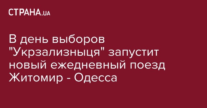 В день выборов "Укрзализныця" запустит новый ежедневный поезд Житомир - Одесса