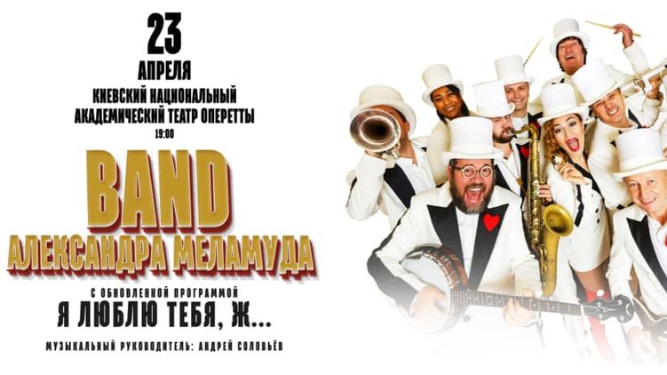 В киевском Театре Оперетты 23 апреля состоится концерт "Я люблю тебя, ж!" талантливого джаз-бэнда им. Джульетты Капулетти эпатажного киевского бизнесмена Александр Меламуда. Талантливая команда выступит под управлением пианиста-виртуоза Андрея Соловьева. Билеты стоимостью от 200 гривен уже поступили в продажу.